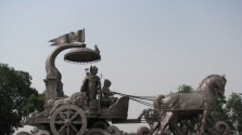 தானேசர் ஸ்தலத்திலுள்ள கோயிலில் அமைக்கப்பட்டிருக்கும் ஒரு புகழ்பெற்ற மூலவடிவத்தின் நகலாகத்தான் இந்த சிற்பச்சித்தரிப்பு உருவாக்கப்பட்டுள்ளது. மஹாபாரத காலத்தில் கீதாபோதேசம் நிகழ்ந்த அதே இடத்தில்தான் தானேசர் கோயில் அமைந்துள்ளது என்பதும் குறிப்பிடத்தக்கது.