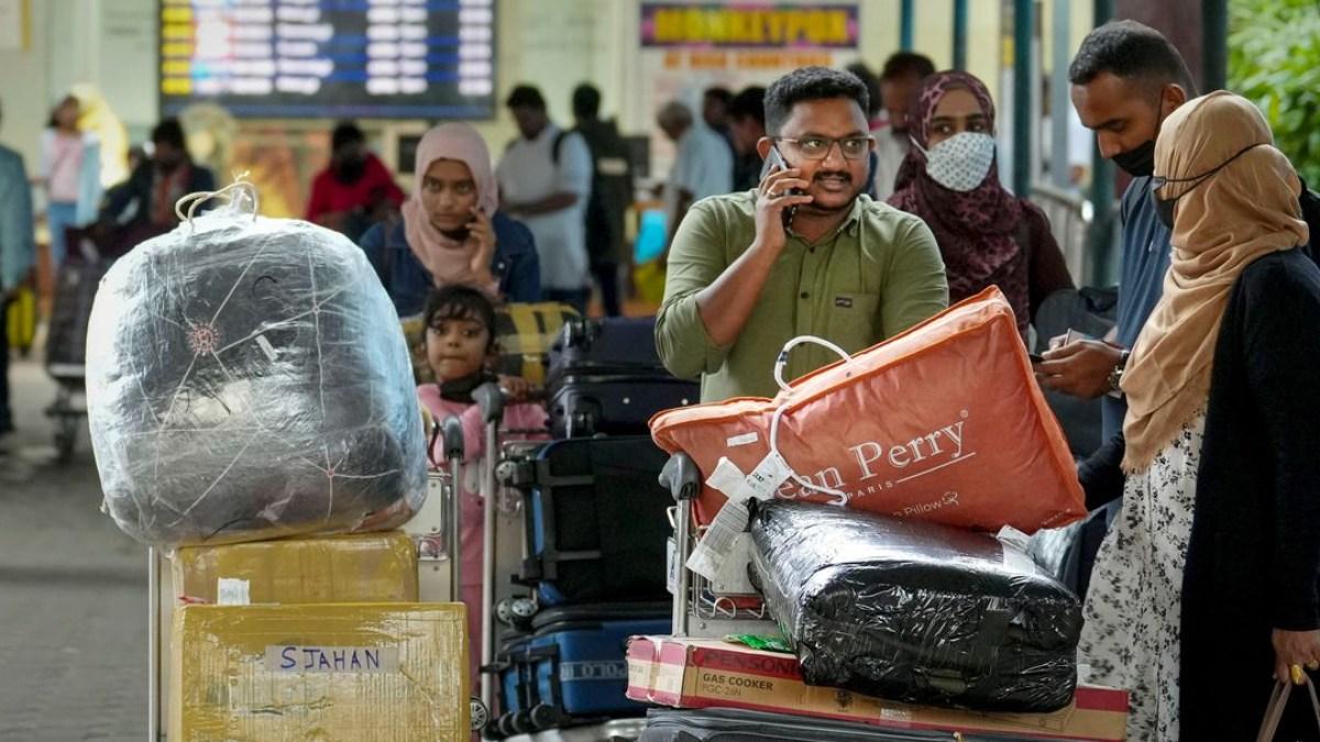 பயணிகளுக்கு உதவியாக விமான நிலைய ஊழியர்கள்