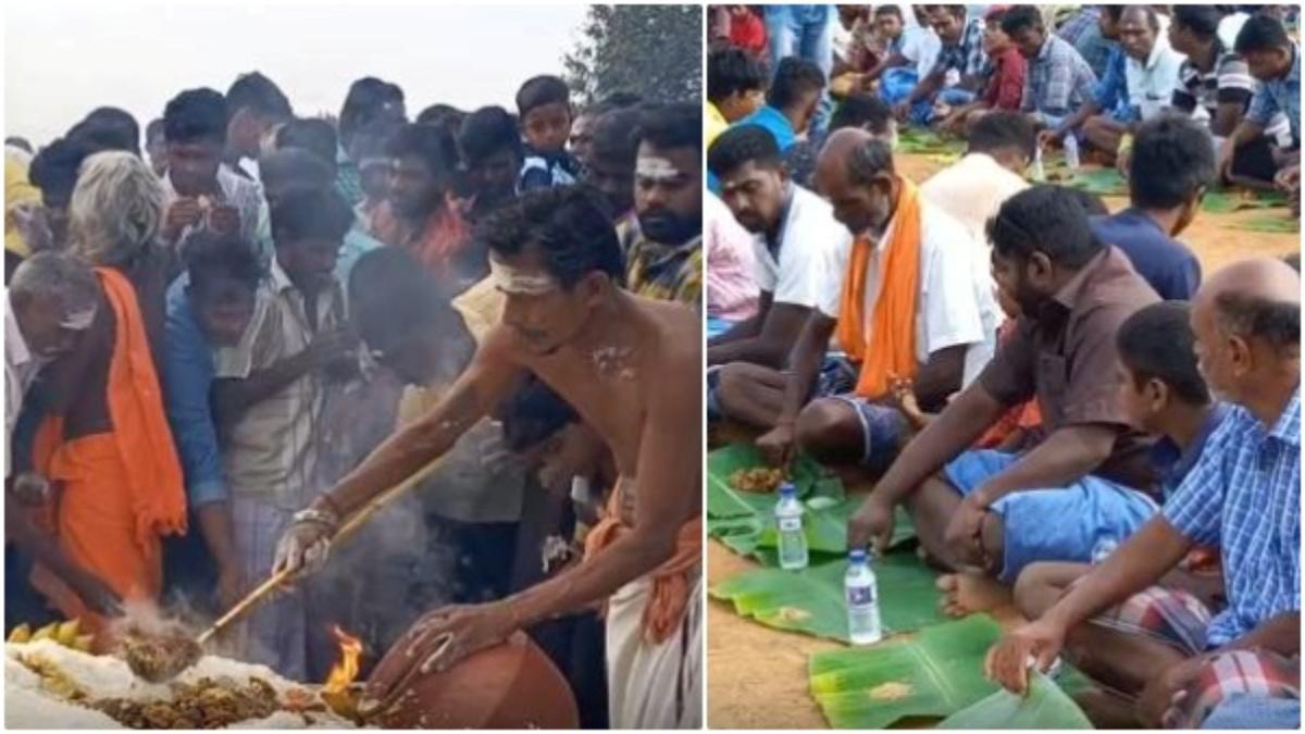 மலை மலையா சுடச்சுட சோறு, அண்டா அண்டாவா கறிக்குழம்பு - ஆனால் ஆண்களுக்கு மட்டும் தான். இந்த திருவிழாவில் கட்டாயம் பெண்களுக்கு அனுமதி இல்லை. காவல் தெய்வமான கரும்பாறை முத்தையா கோயிலில் ஆண்டு தோறும் நடைபெறும் இந்த வினோத திருவிழாவில் யார் வேண்டுமானாலும் கலந்து கொண்டு வயிறு முட்ட கறி விருந்து சாப்பிடலாம். நீங்க மதுரையில இருந்தா இந்த திருவிழாவுக்கு போக மறந்துடாதீங்க!