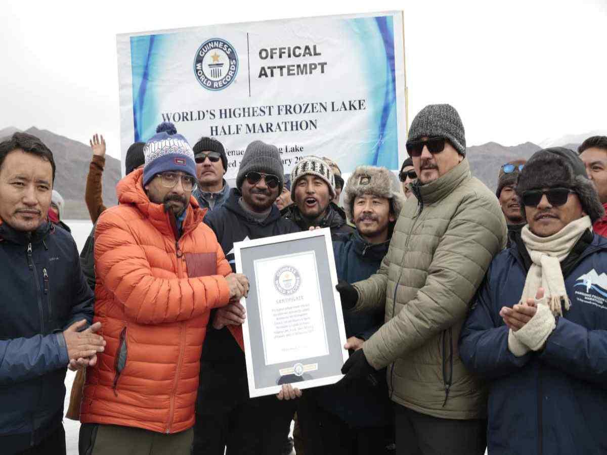 உலகின் சாகசப் பிரியர்களும், வித்தியாசமாக ஏதாவது சாதிக்க வேண்டும் என்ற எண்ணம் கொண்டவர்களும் எதையாவது செய்து அதனை சாதனையாக்கி கின்னஸ் புத்தகத்தில் இடம் பிடித்து விடுகின்றனர். தினமும் ஏதோ ஒரு விஷயம் கின்னஸ் புத்தகத்தில் இடம் பிடிப்பதை நாமும் செய்திகளில் படிக்கிறோம். அது போல, லடாக் யூனியன் பிரதேசம் உறைந்த பாங்காங் த்சோ ஏரியில் 'அதிக உயரத்தில்' அரை மாரத்தான் போட்டியை நடத்தி கின்னஸ் உலக சாதனை படைத்துள்ளது. இது மிகவும் பெருமைப்படக்கூடிய விஷயமாகும்!